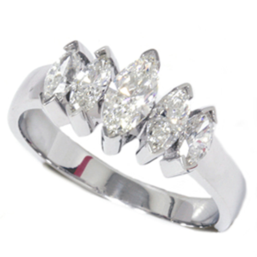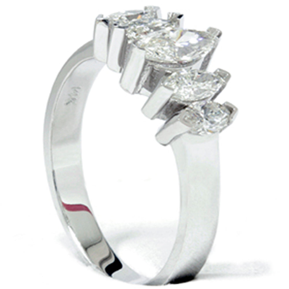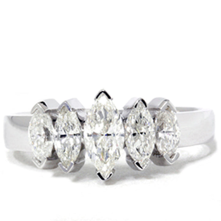 1 1/2 CT Marquise Diamond Wedding Ring 14K White Gold Five Stone Anniversary Band