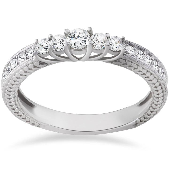 1/2 CT Vintage Diamond Anniversary Ring 14K White Gold