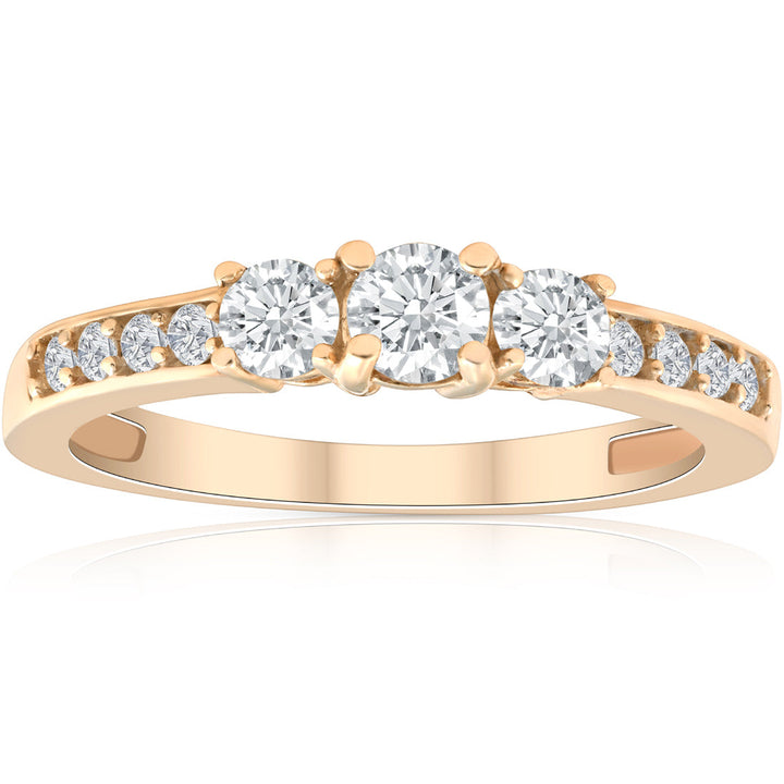1/2 CT Diamond Three Stone Ring 14K Yellow Gold