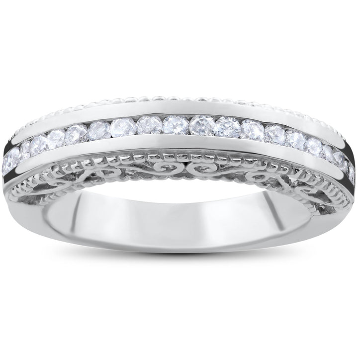 1/2 CT Vintage Heirloom Diamond Wedding Ring 14K White Gold