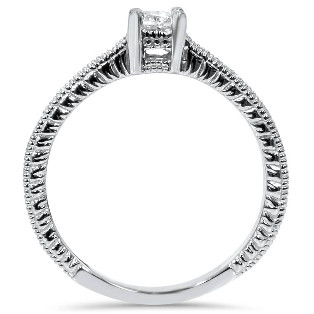 1/2 CT Princess Cut Antique Vintage Diamond Engagement Ring 14K White Gold
