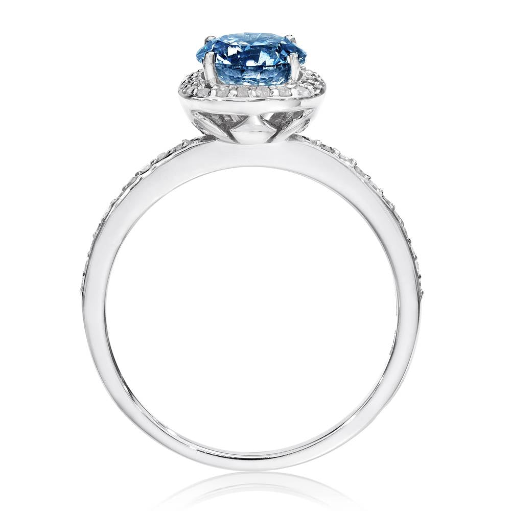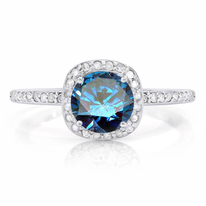 1 1/6ct Blue Diamond Cushion Halo Engagement Ring 14K White Gold