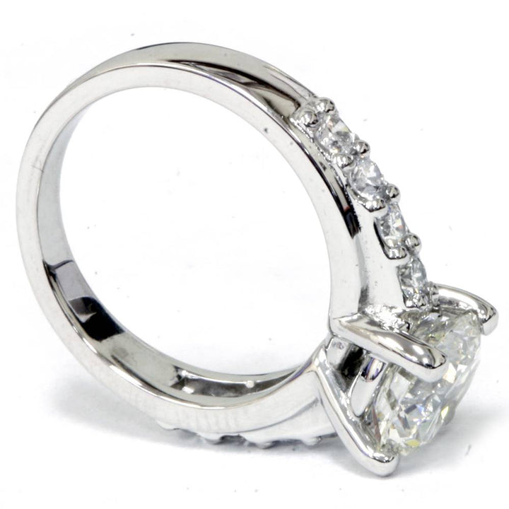 This 2ct Diamond Engagement Wedding Ring by Pompeii3 offers exceptional sparkle with a 1.5 carat lab-grown center diamond complemented by eight natural accent diamonds, making it an exquisite symbol of love and commitment.