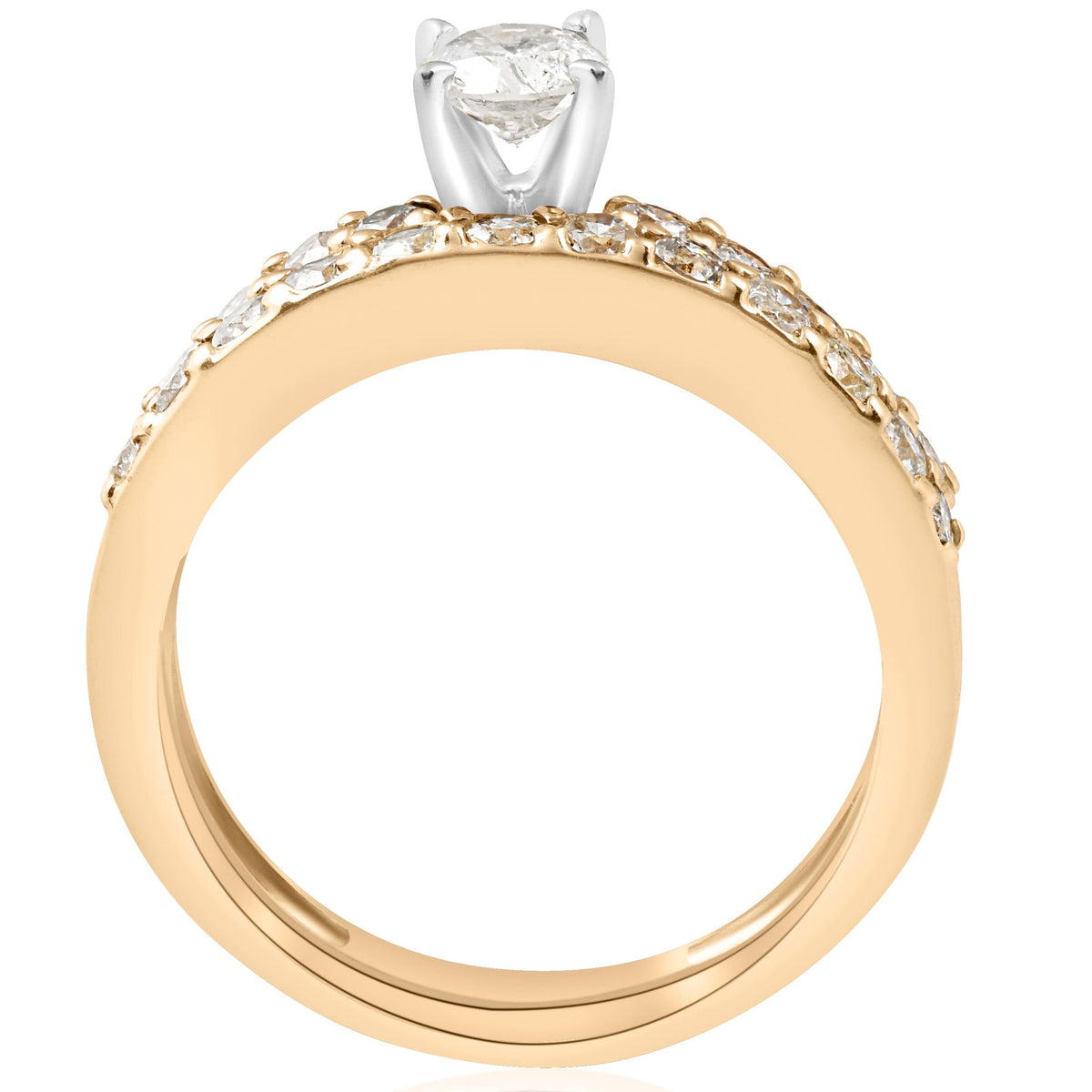 14k Yellow Gold 1 Carat Diamond Engagement Ring Matching Wedding Band Set
