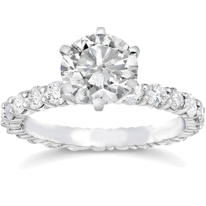 3 1/2 CT Clarity Enhanced Diamond Eternity Engagement Ring 14K Round Cut White Gold