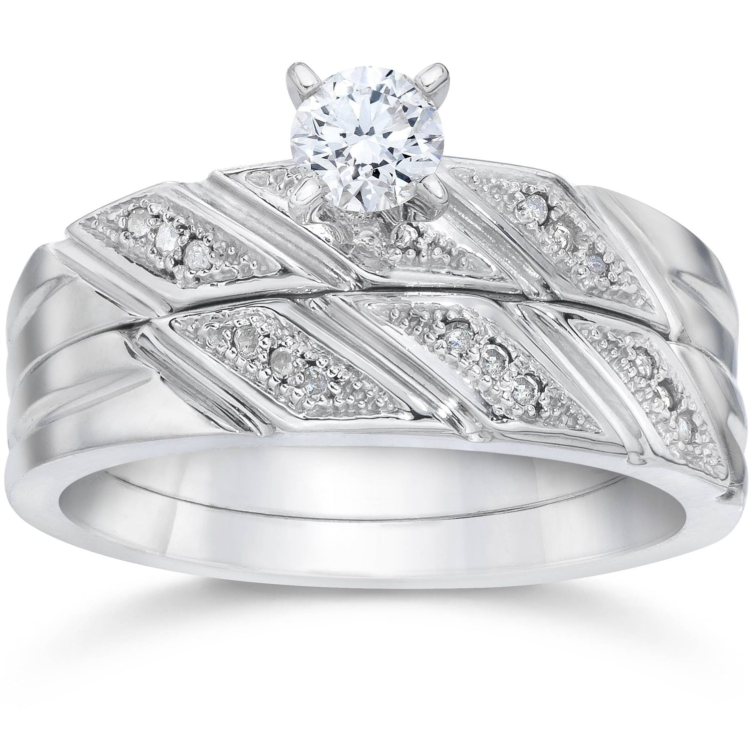 1/5ct Diamond Engagement Ring Matching Wedding Band Set 10K White Gold