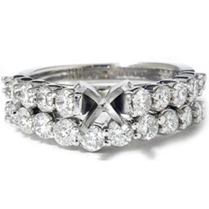 This White Gold 1 1/2ct G SI Diamond Engagement Wedding Ring Set by Pompeii3 exudes timeless bridal elegance. Featuring a stunning semi-mount engagement ring and matching wedding band, both adorned with brilliant diamonds, it’s designed for lifelong celebration and customizable to suit your center stone preference.