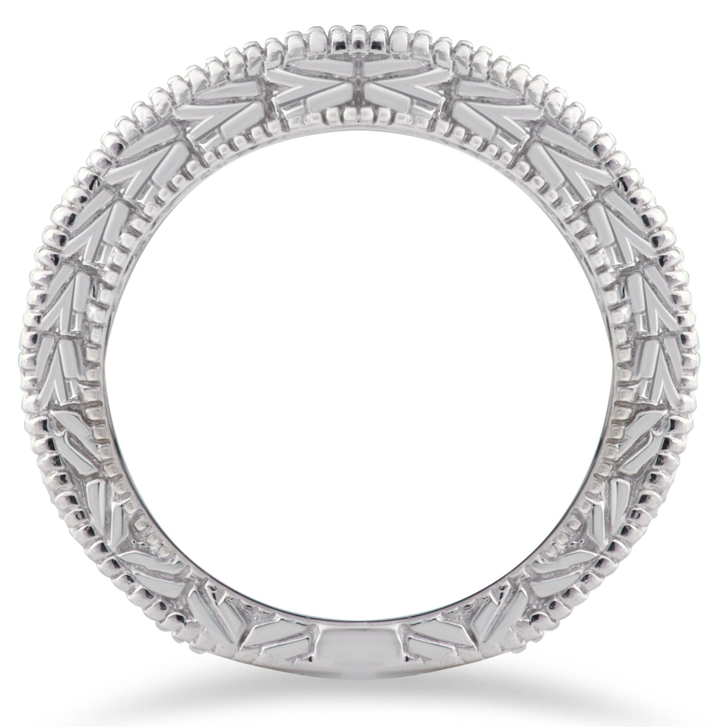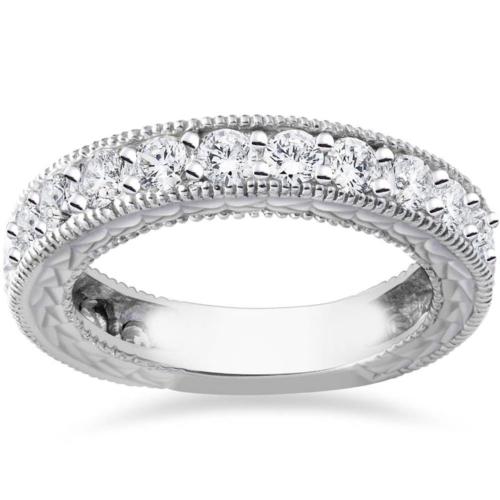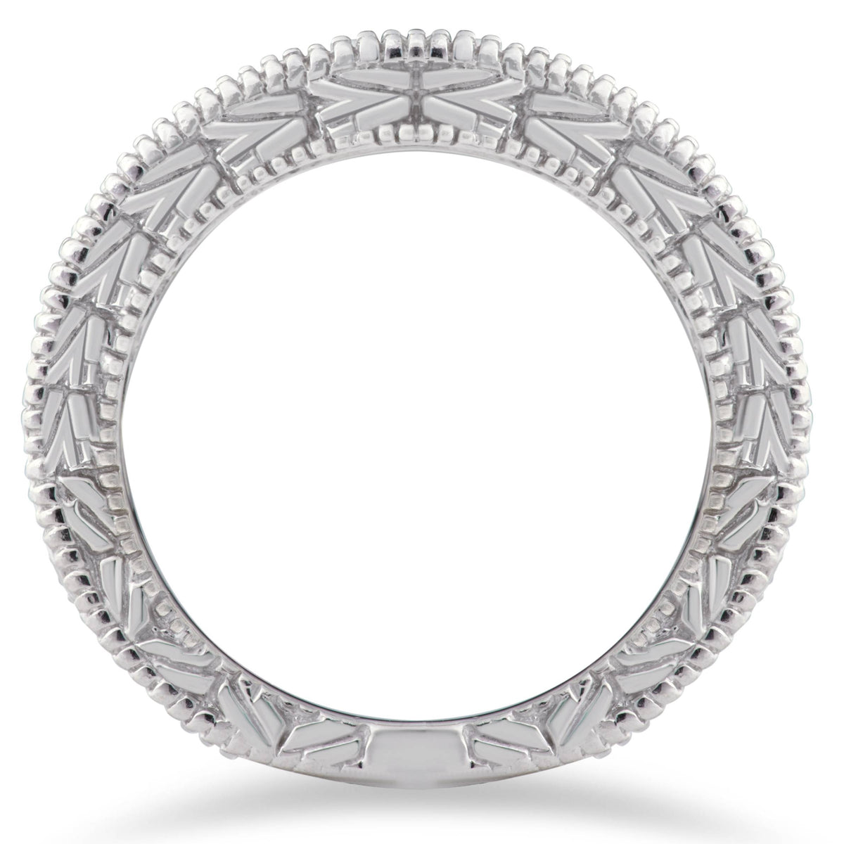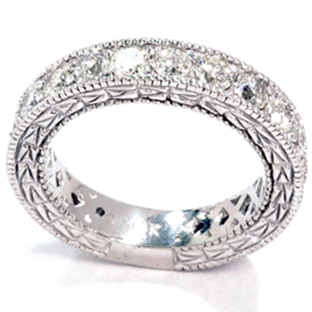 This 1 5/8ct Lab Created Diamond Ring by Pompeii3 features 19 round brilliant diamonds in a vintage-inspired filigree design, all prong set in solid 14K white gold. The antique-like style offers both timeless elegance and intricate beauty, ideal for those who appreciate vintage charm.