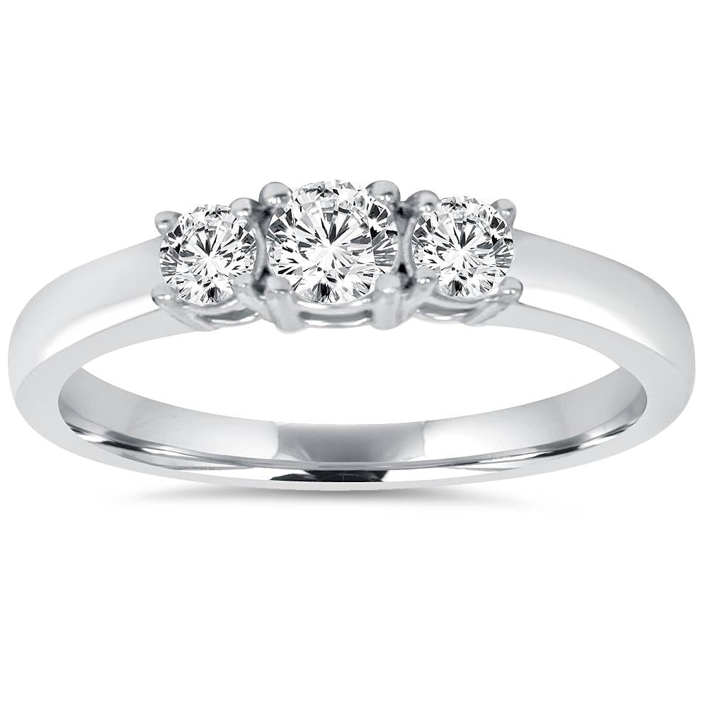 3/4CT Diamond 3 Stone Engagement Ring 14K White Gold