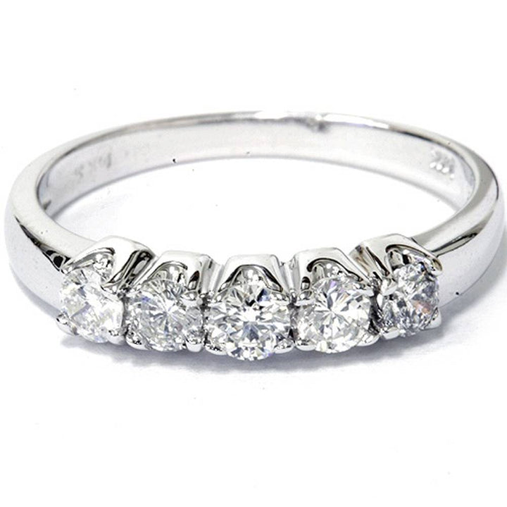 This 1/2ct Round Diamond Wedding Anniversary Ring by Pompeii3 is crafted in solid 14k white gold, featuring five round brilliant cut diamonds. This classic design makes it the perfect wedding anniversary ring or a thoughtful gift.