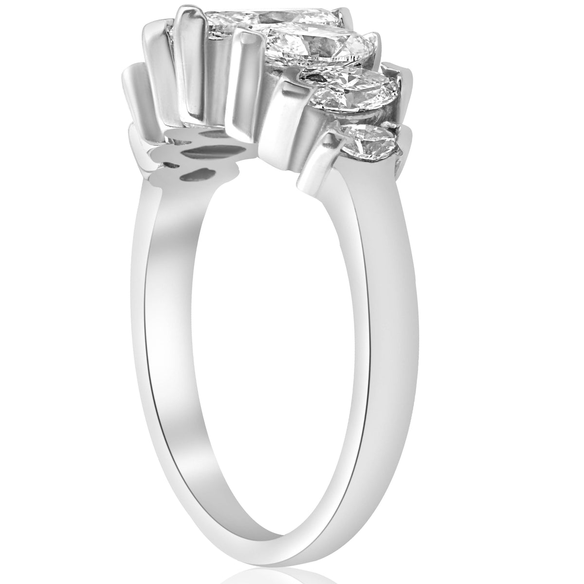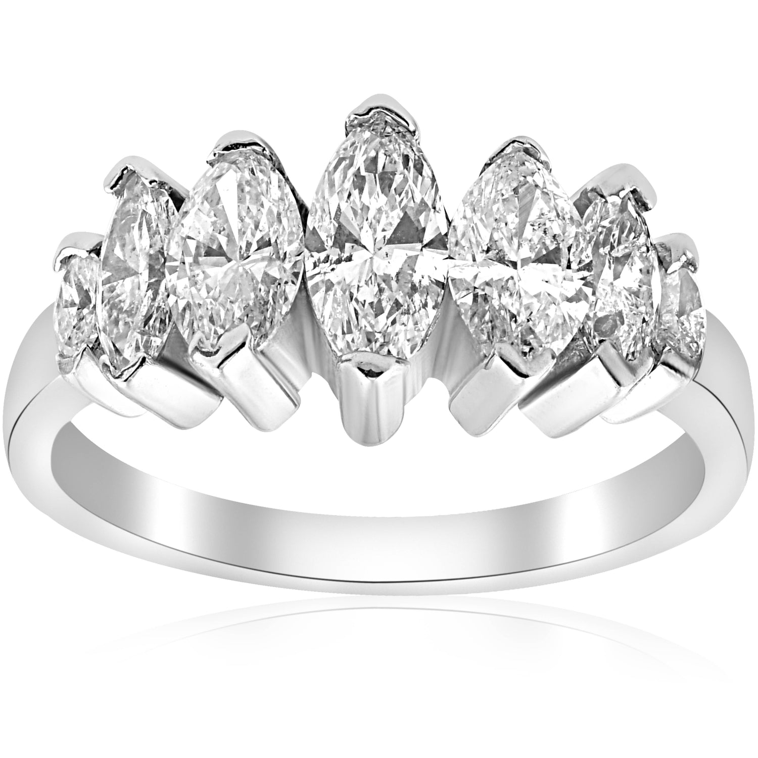 This 1 7/8ct Huge Marquise Real Diamond Anniversary Ring by Pompeii3 exudes classic elegance. Featuring seven V-prong set marquise cut natural diamonds in solid 14k white gold, the ring sparkles with stones ranging from 1/5ct to 1/2ct each, totaling an impressive 1 7/8 carats.