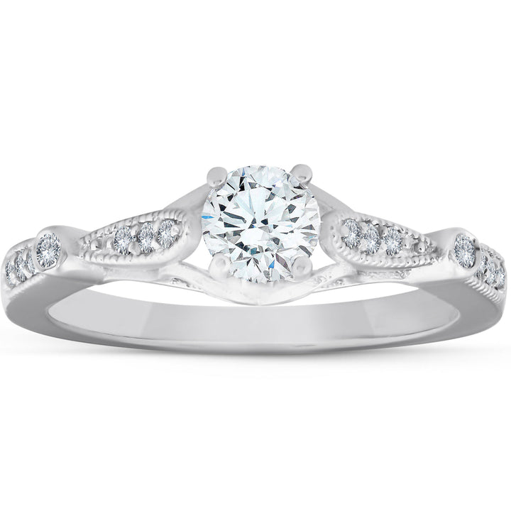 The 5/8ct Diamond Vintage Engagement Ring by Pompeii3 exudes vintage charm with modern elegance. A striking 1/2ct center diamond is complemented by delicate accent diamonds for an effortlessly romantic look.