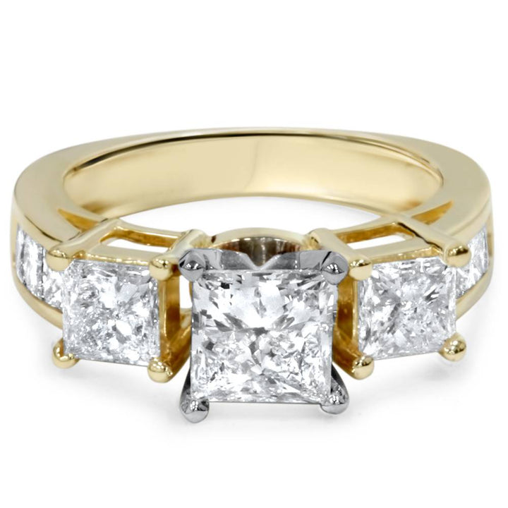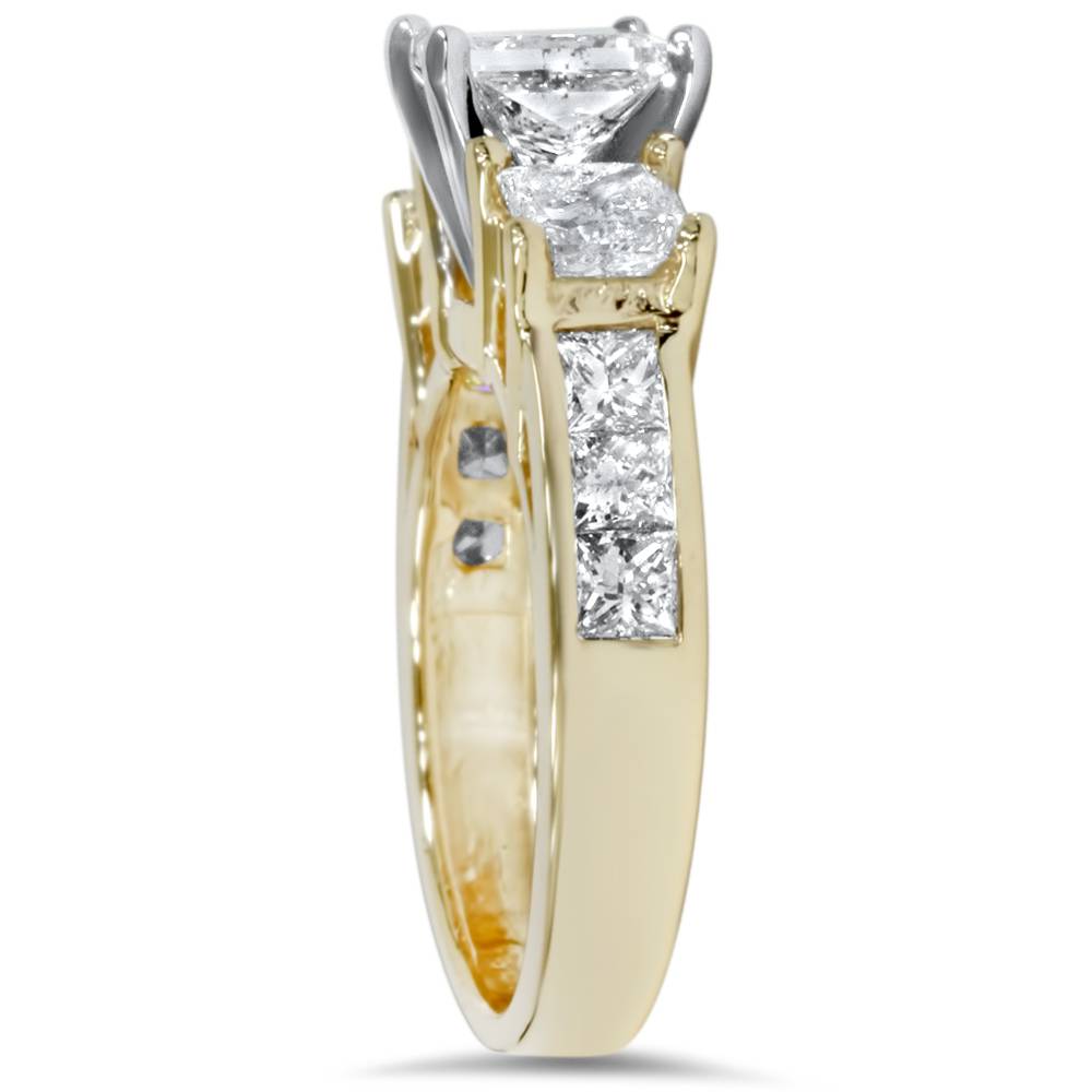 2 CT Princess Cut Diamond 3 stone Engagement Ring 14K Yellow Gold