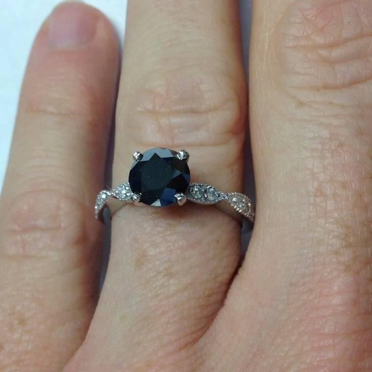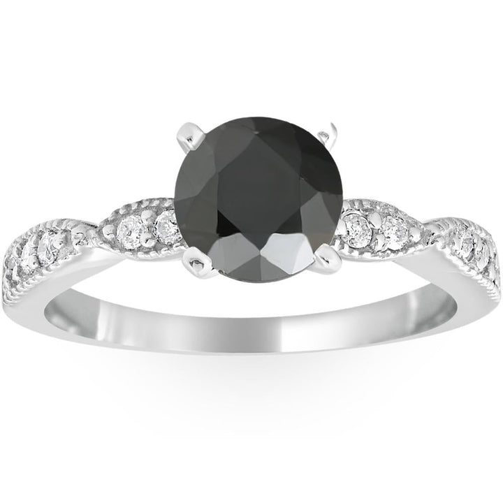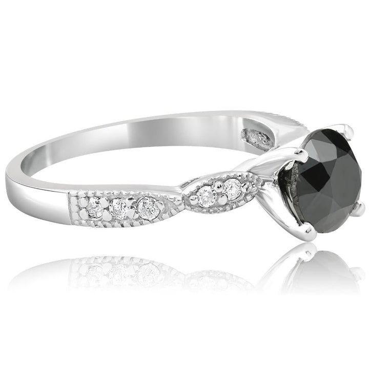 Set in solid 14k white gold with a 2ct genuine black diamond and 10 round cut natural white diamonds.