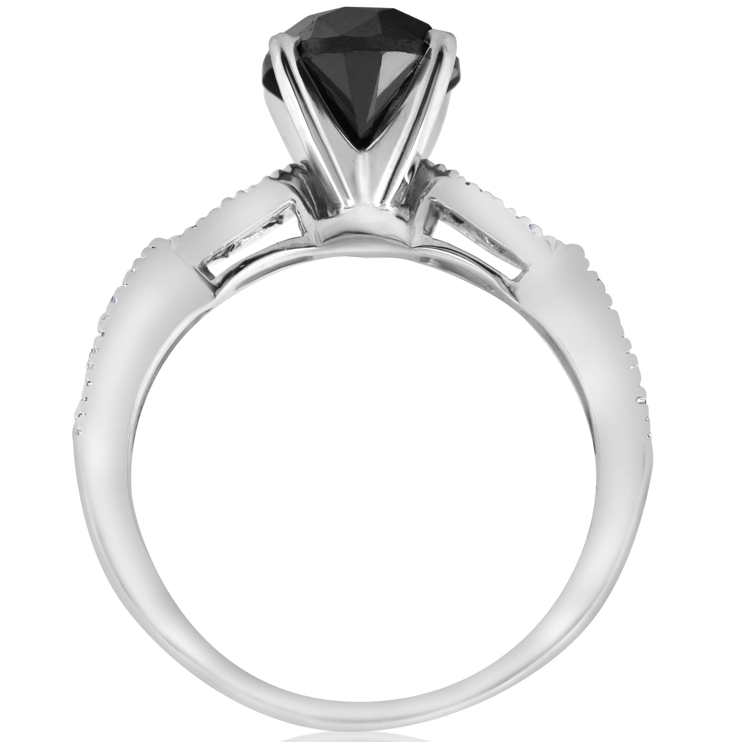 2 1/4ct Black & White Diamond Engagement Ring 14K White Gold