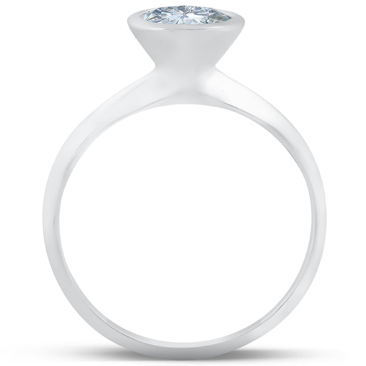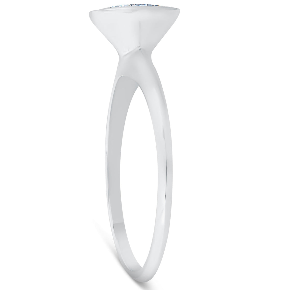 1Ct Round Cut Diamond Bezel Solitaire Engagement Ring 14k White Gold