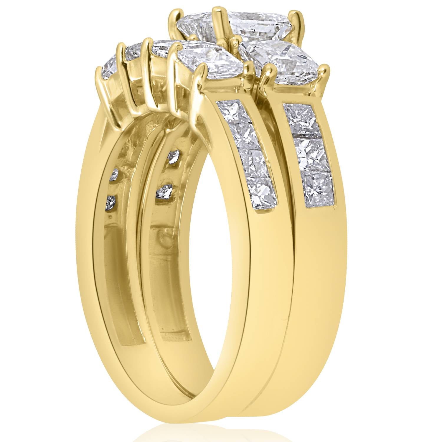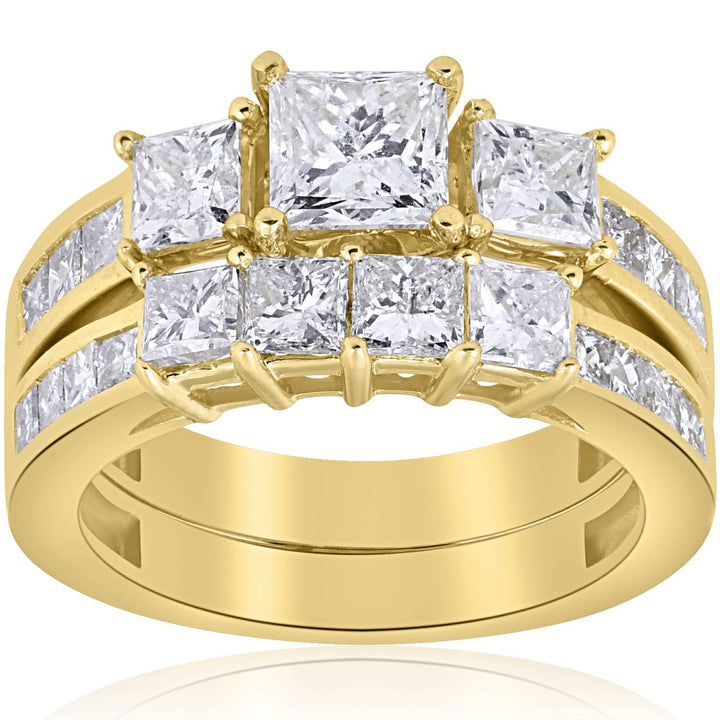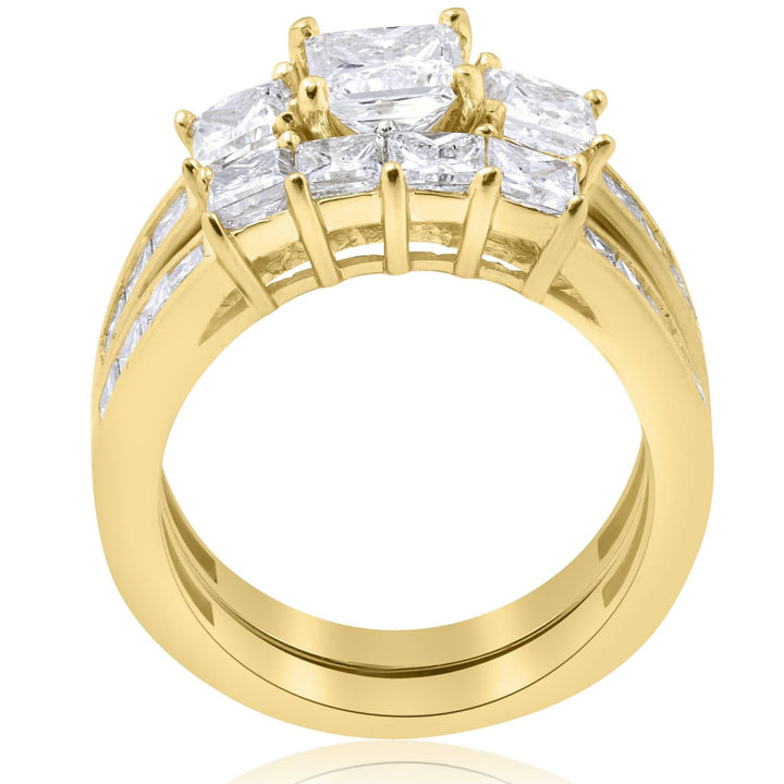 3 1/2 CT Side Stone Diamond Ring Set 14K Yellow Gold