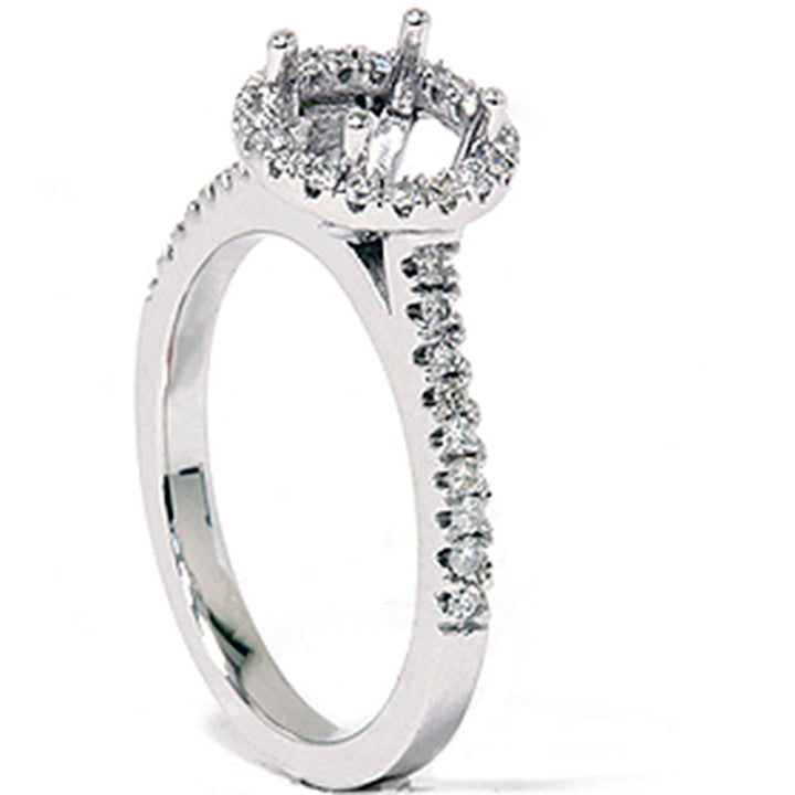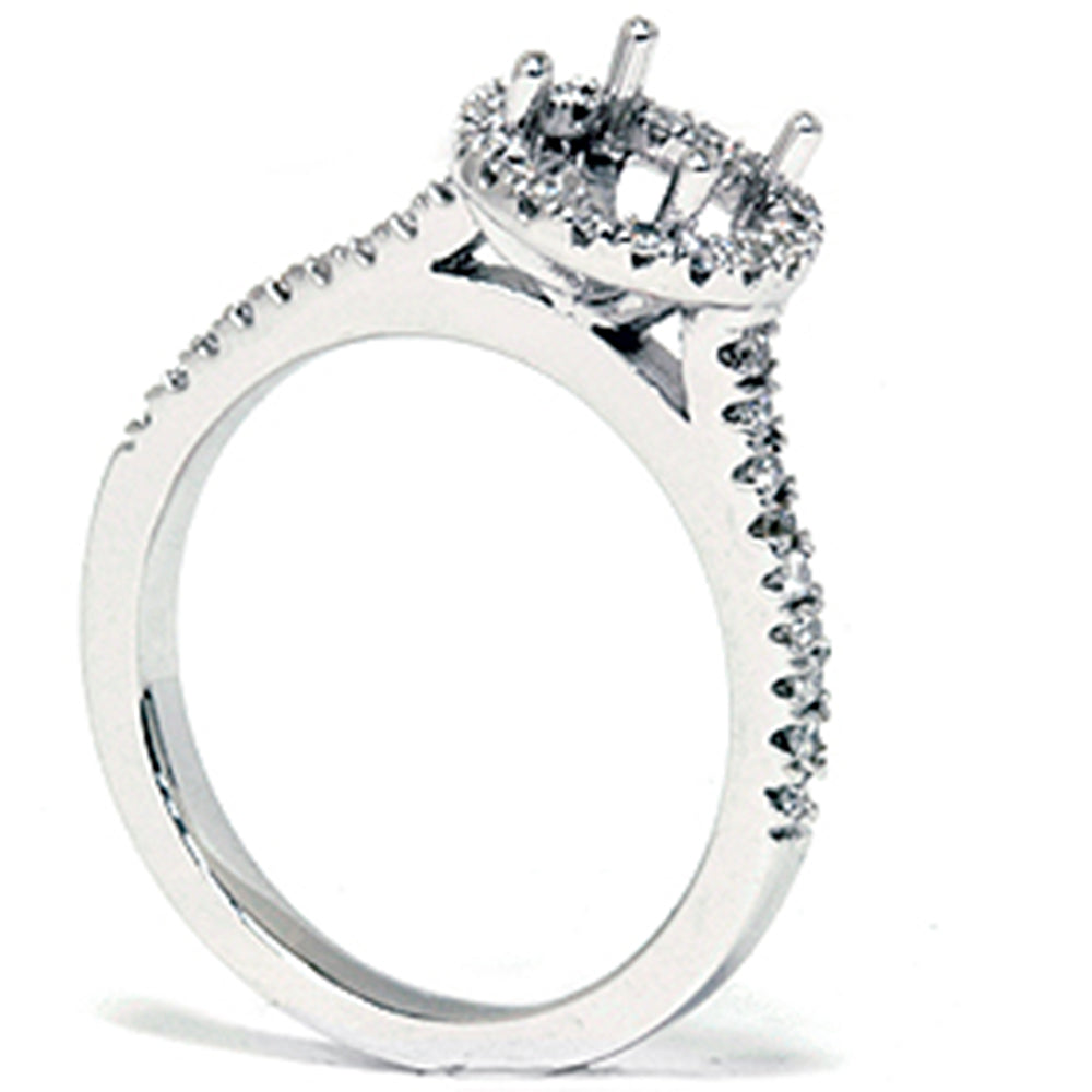 Made in 14k white gold with 38 pavé-set round brilliant cut natural diamonds totaling 1/3ct. Accommodates a 3/4–1 1/4ct round center diamond.