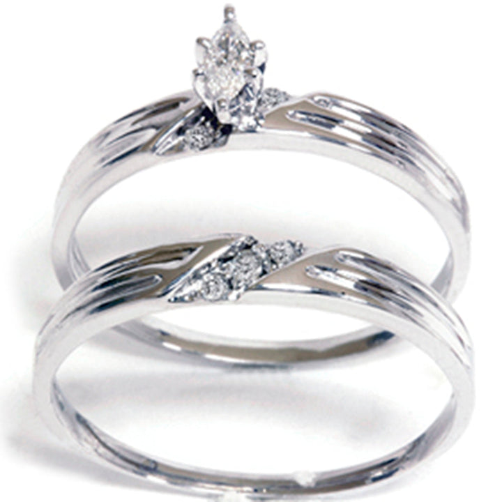 1/4ct Marquise Pave Diamond Ring Set 14K White Gold