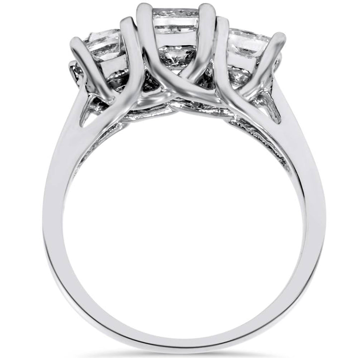 2 CT Three Stone Princess Cut Diamond Ring 14K Gold