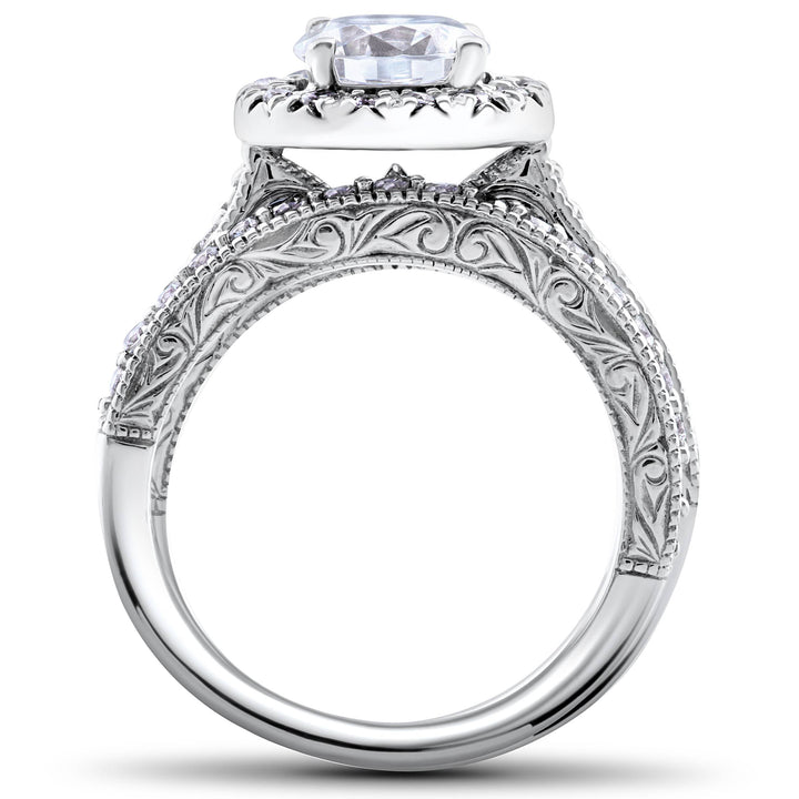2 1/2 ct Halo Diamond Engagement Vintage Matching Wedding Ring White Gold