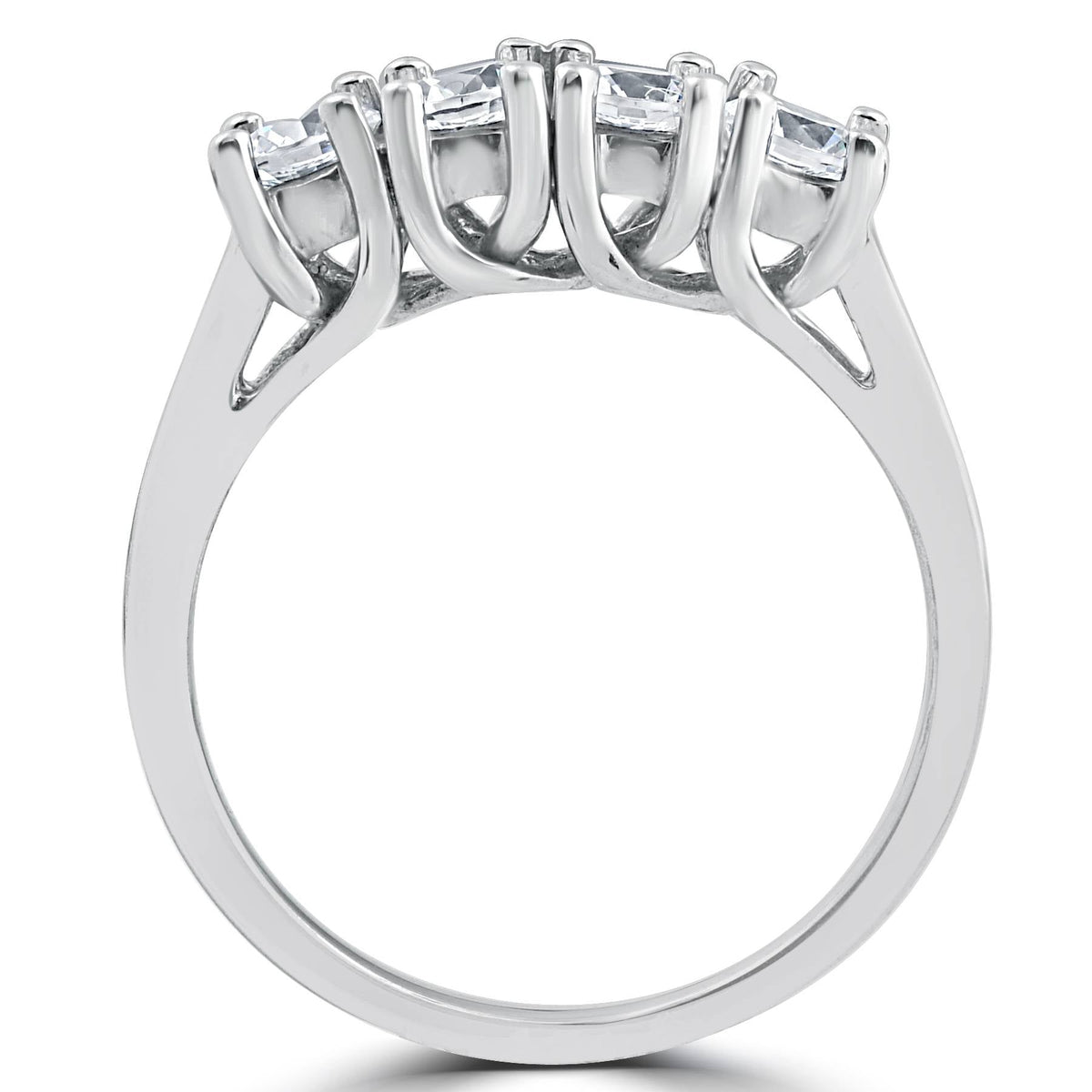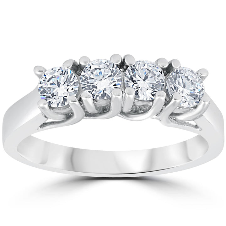Handcrafted in solid 14k white gold with 4 round brilliant cut natural diamonds totaling 1 carat weight. Prong set design.