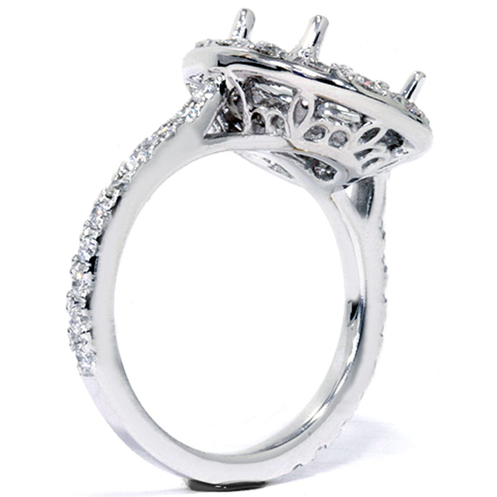This VS 1ct Pavé Halo Oval Engagement Ring Setting by Pompeii3 is crafted to highlight and cradle your center stone with sparkling brilliance. An elegant and luxurious design ready for a stunning 10 x 8mm oval gemstone.
