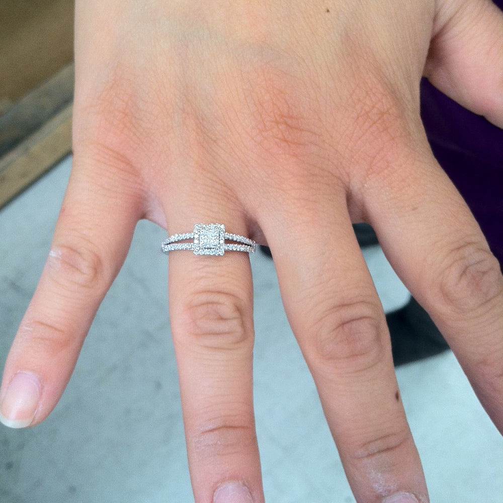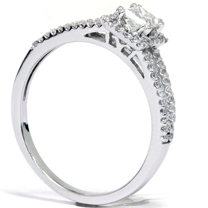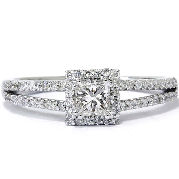 5/8 ct Princess Cut Halo Split Shank Engagement Ring 14K White Gold