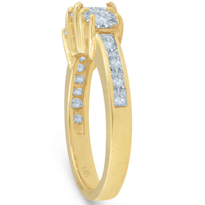 2 CT Three Stone Diamond Ring 14K Yellow Gold