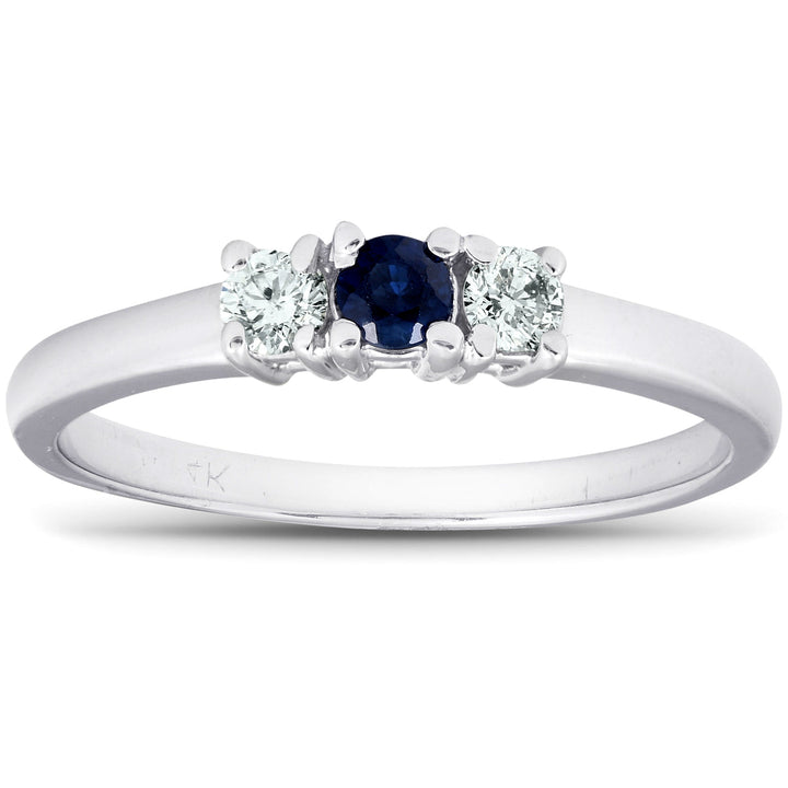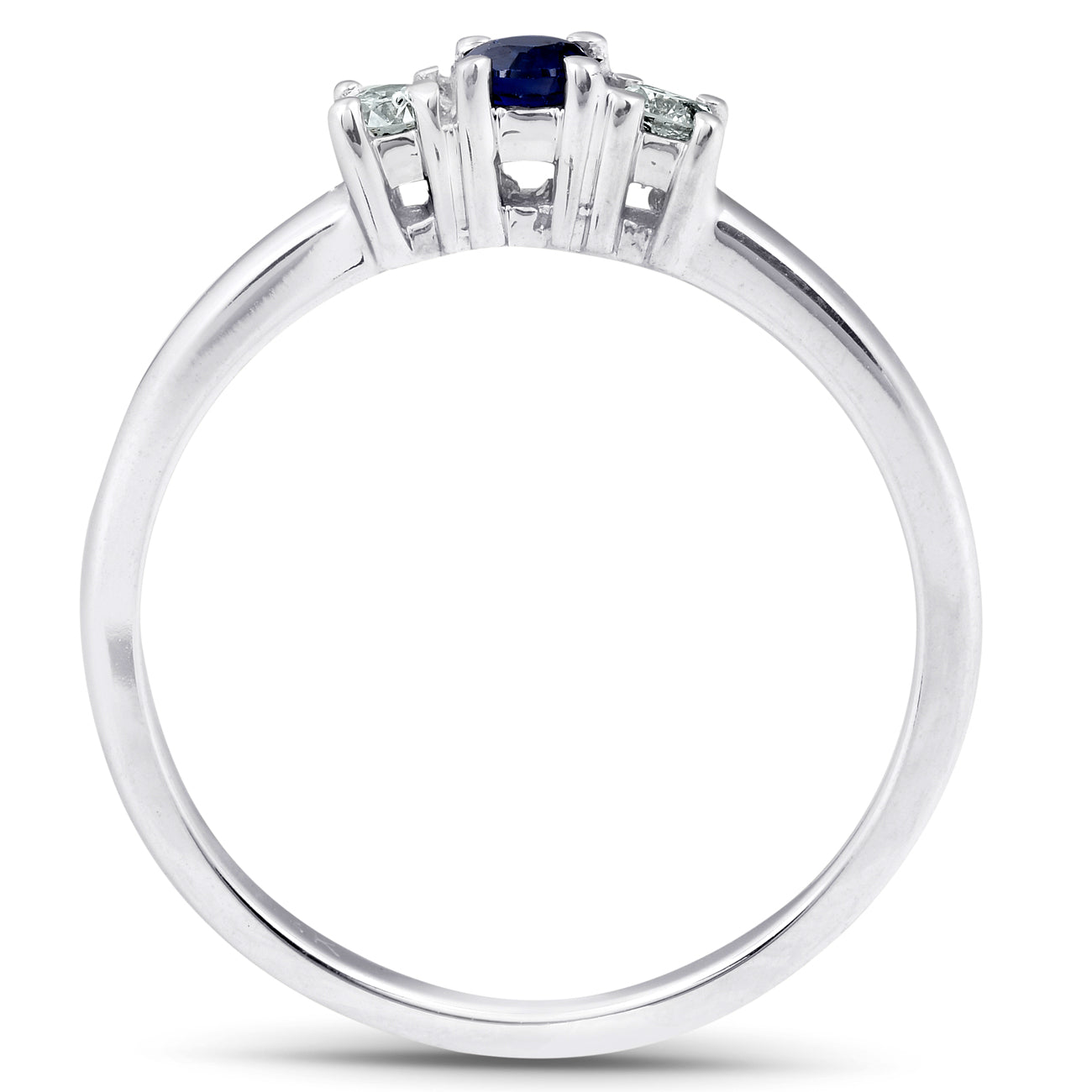 1/4ct 3 Stone Blue Sapphire Diamond Ring 14k White Gold