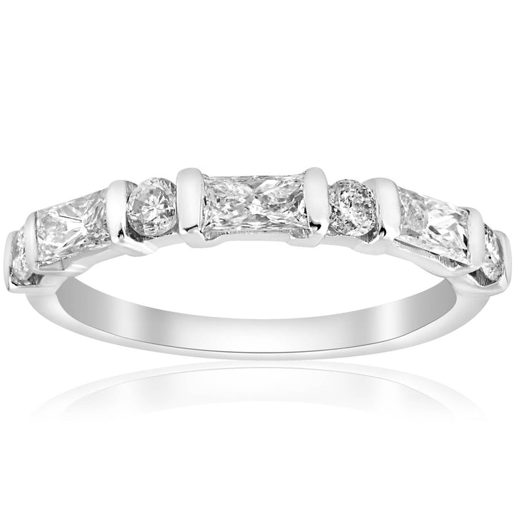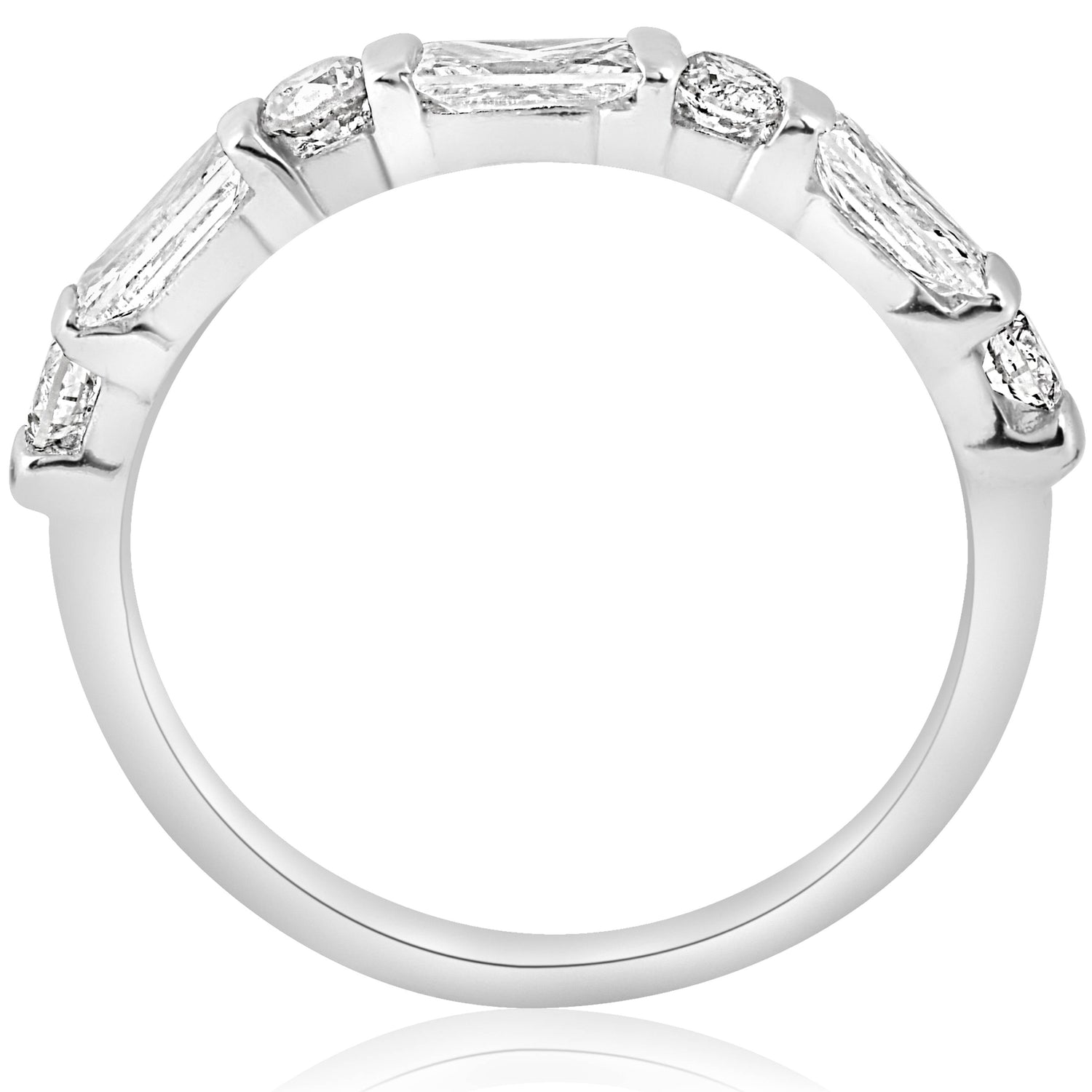 This 1/2ct Round & Baguette VS Diamond Ring by Pompeii3 offers sleek, architectural beauty. Featuring both baguette and round-cut diamonds in an elegant design, this white gold band is a versatile piece, perfect for stacking or standing alone.