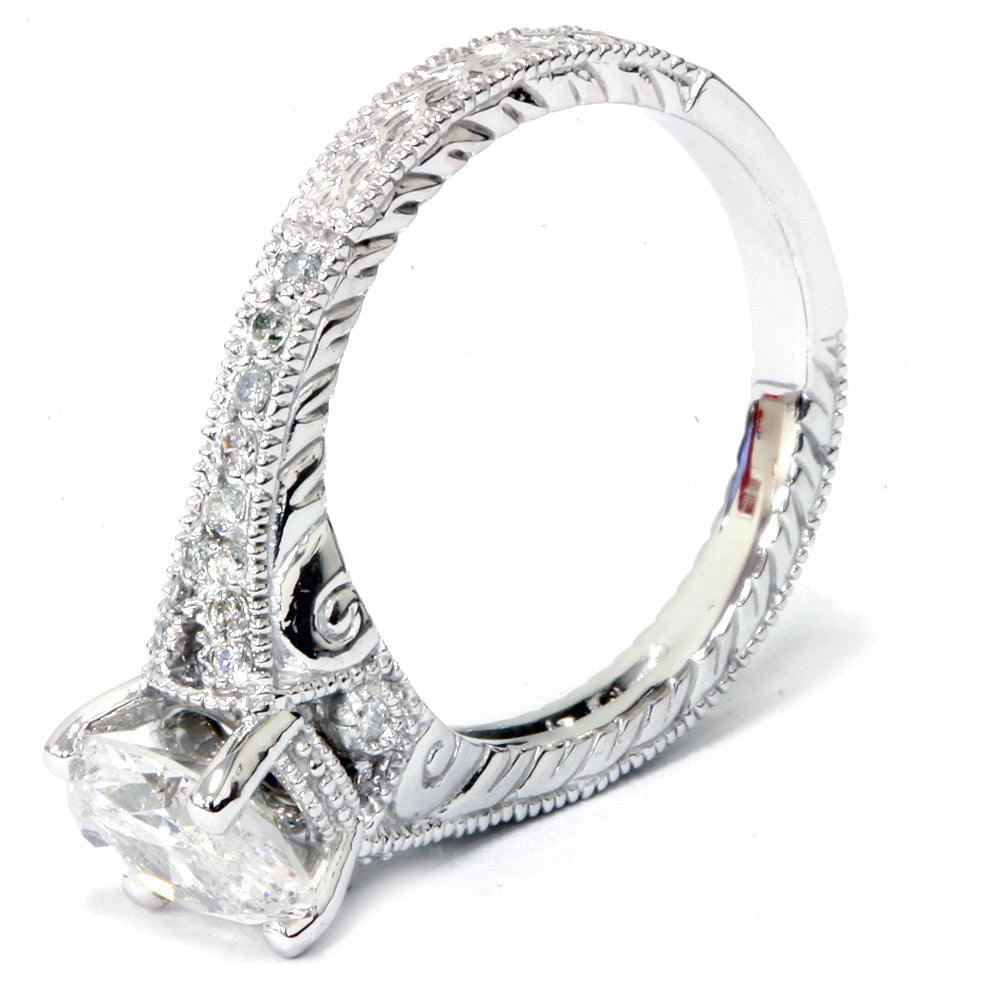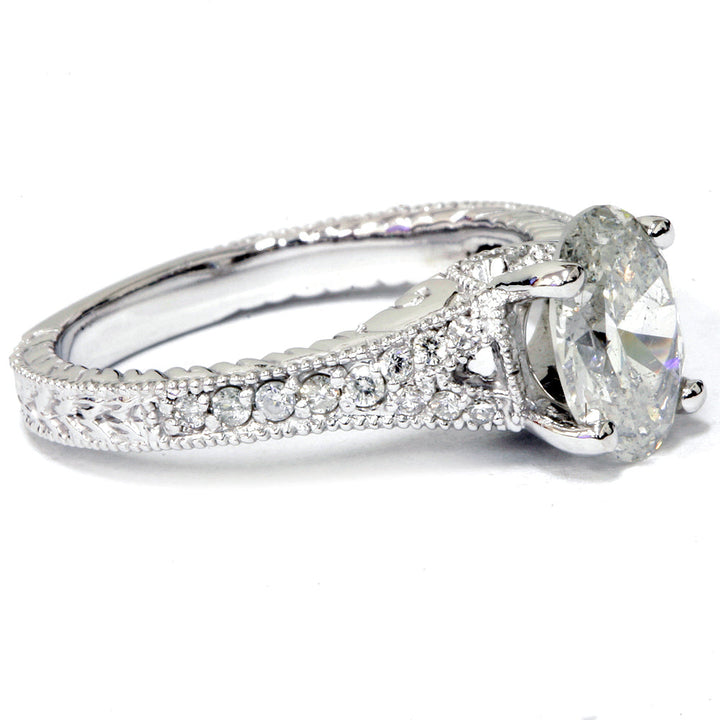 1 1/4ct oval Diamond Vintage Engagement Ring 14K White Gold