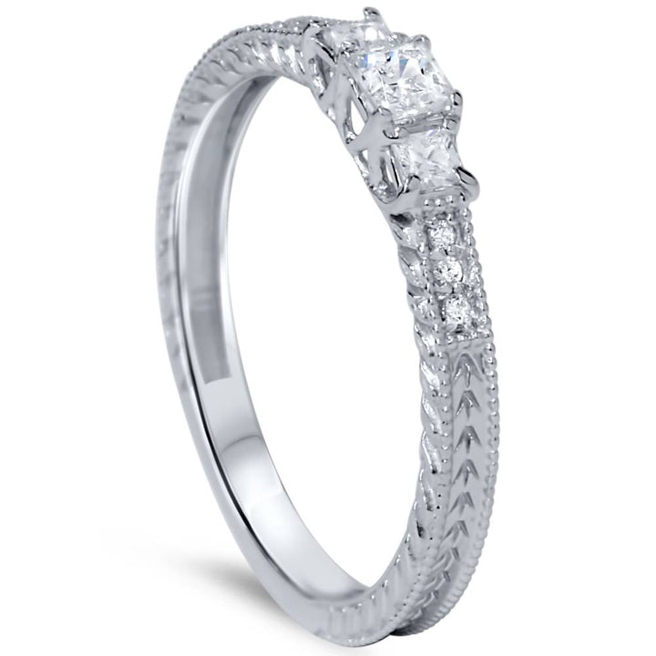 1/4ct Vintage Three Stone Princess Cut Diamond Engagement Ring 14K White Gold