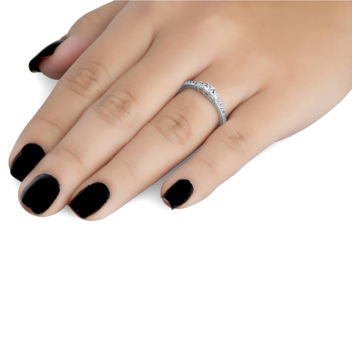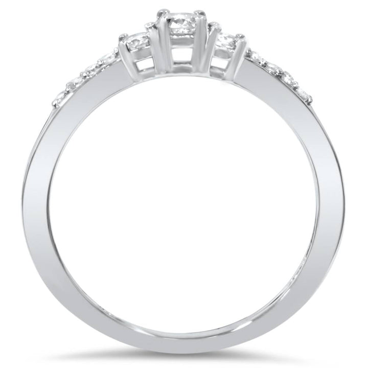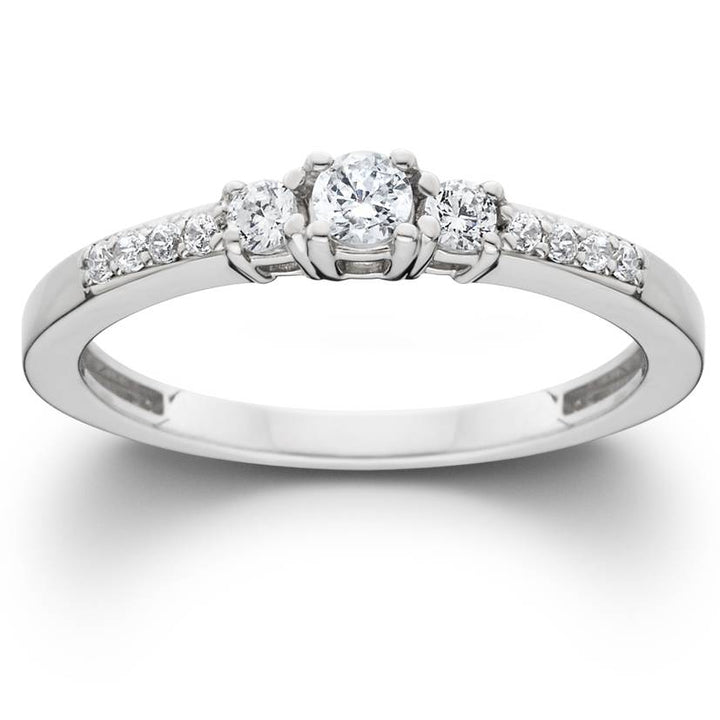 1/3ct Three Stone Round Diamond Engagement Ring 14K White Gold