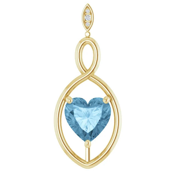 9mm Blue Topaz Women's Heart Pendant in 14k Gold Necklace 6mm Tall