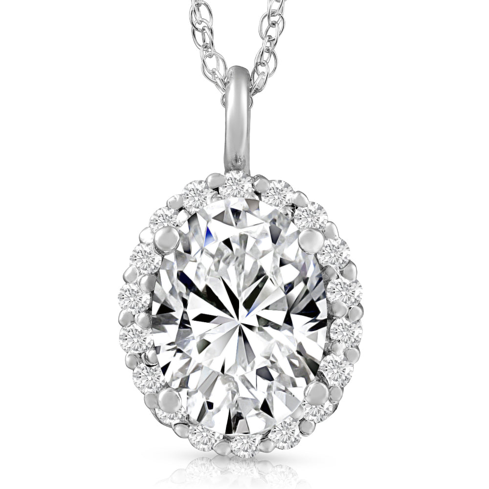 3 Ct Oval Moissanite & Lab Grown Diamond Halo Pendant 14k Gold Necklace