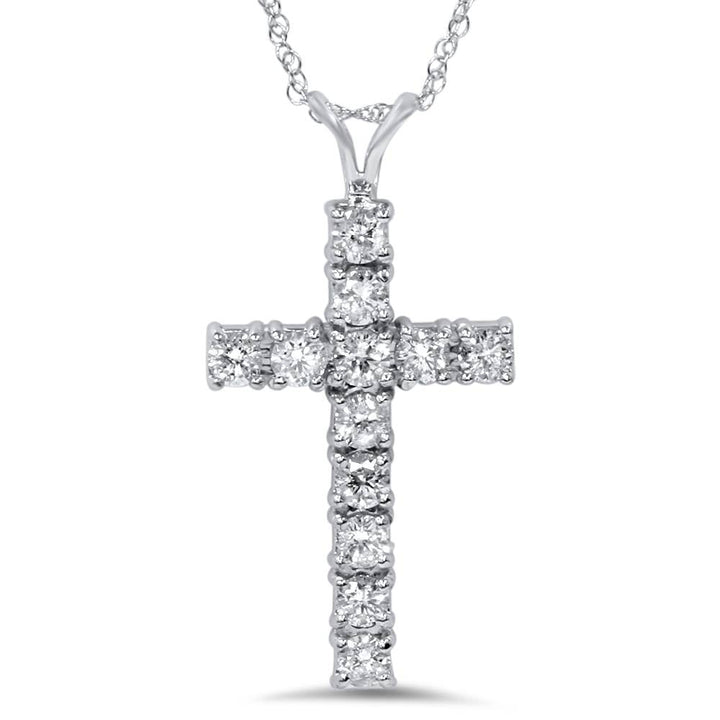 1 1/2 cttw White Gold Real Diamond Cross Pendant 14K 1 1/4' Tall