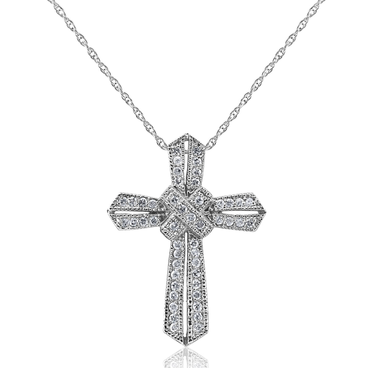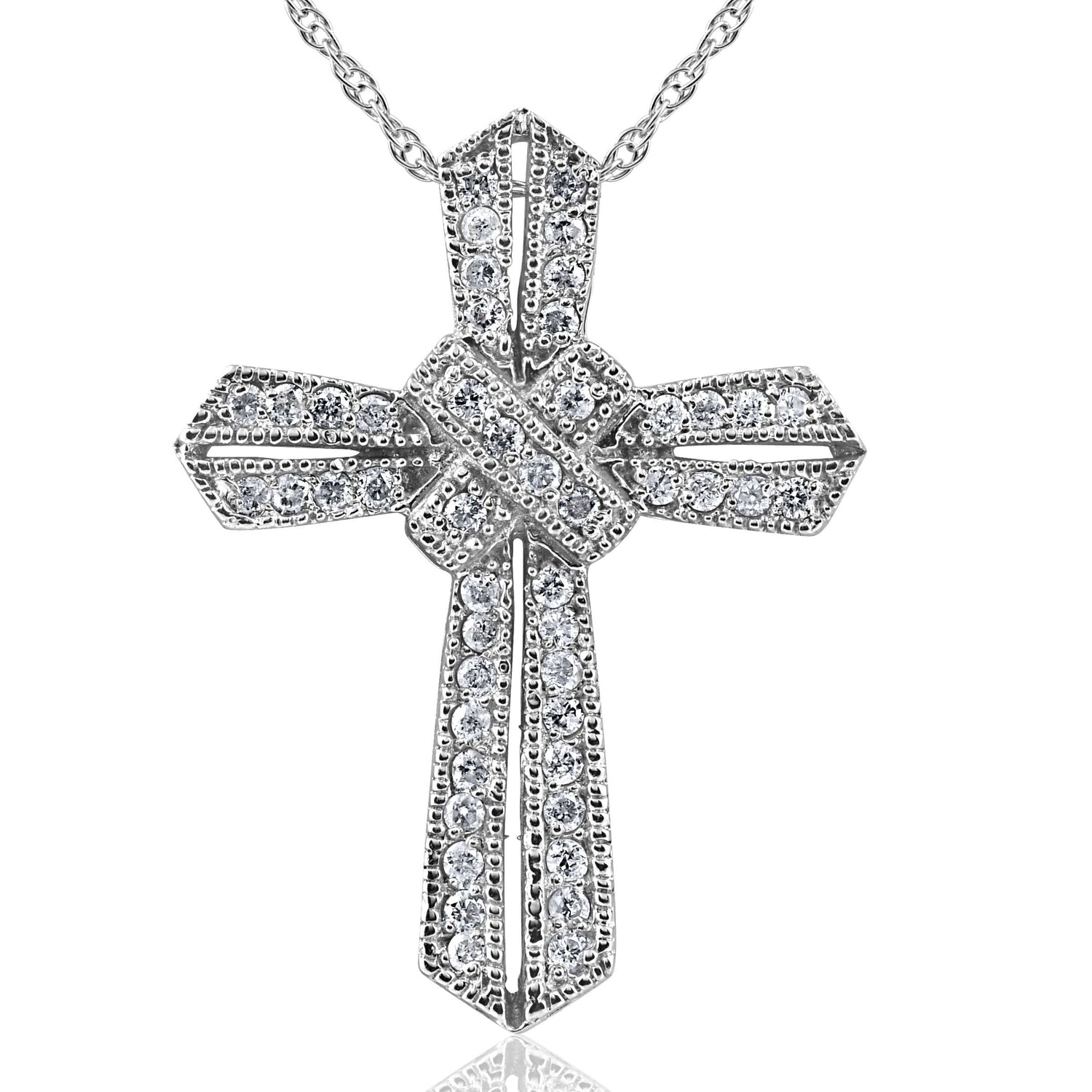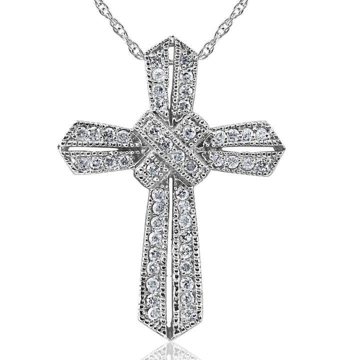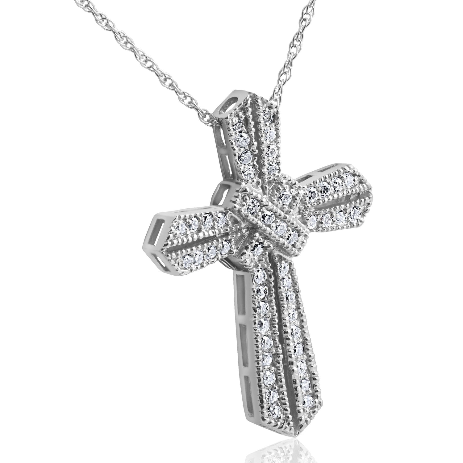 1/2 CT Vintage Pave Diamond Cross Pendant 14K White Gold