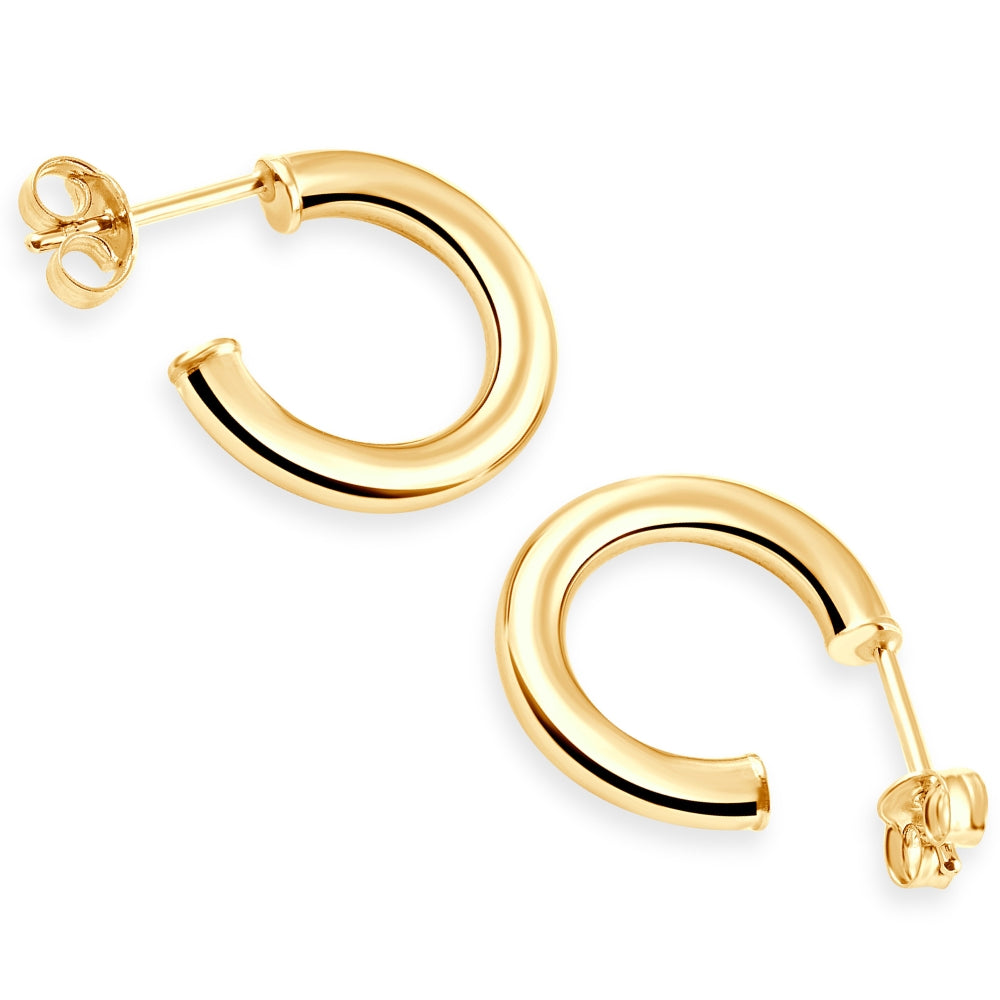 Made of solid 14k yellow gold, measuring 0.5' tall and 3mm wide, weighing 1 gram.