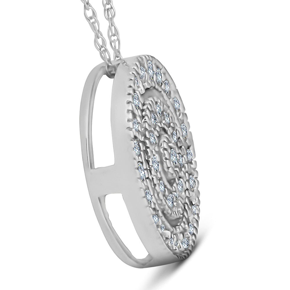 White Gold 3/8 ct Filigree Pave Circle Antique Pendant