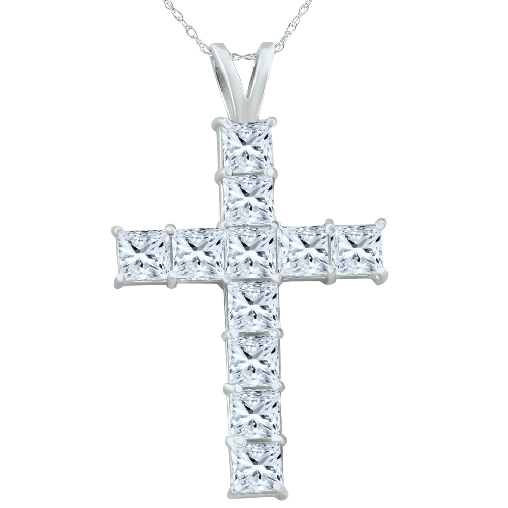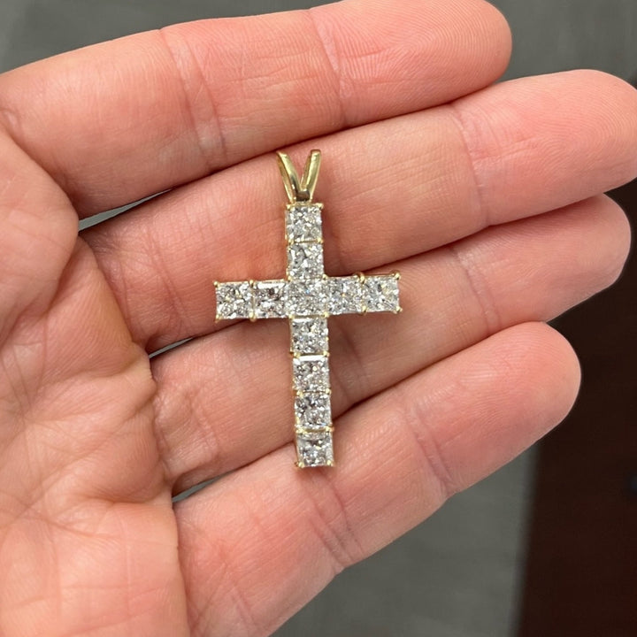 5.80Ct Princess Cut Diamond Cross Pendant 14k Gold Necklace Lab Grown 1 1/2'