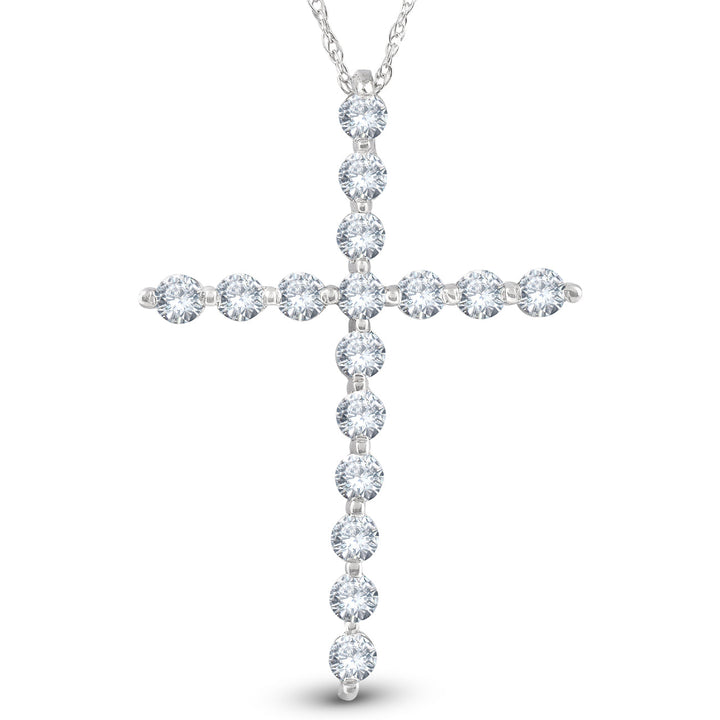 5/8 Ct Diamond Cross Pendant Necklace 18' 10k White Gold 1' Tall