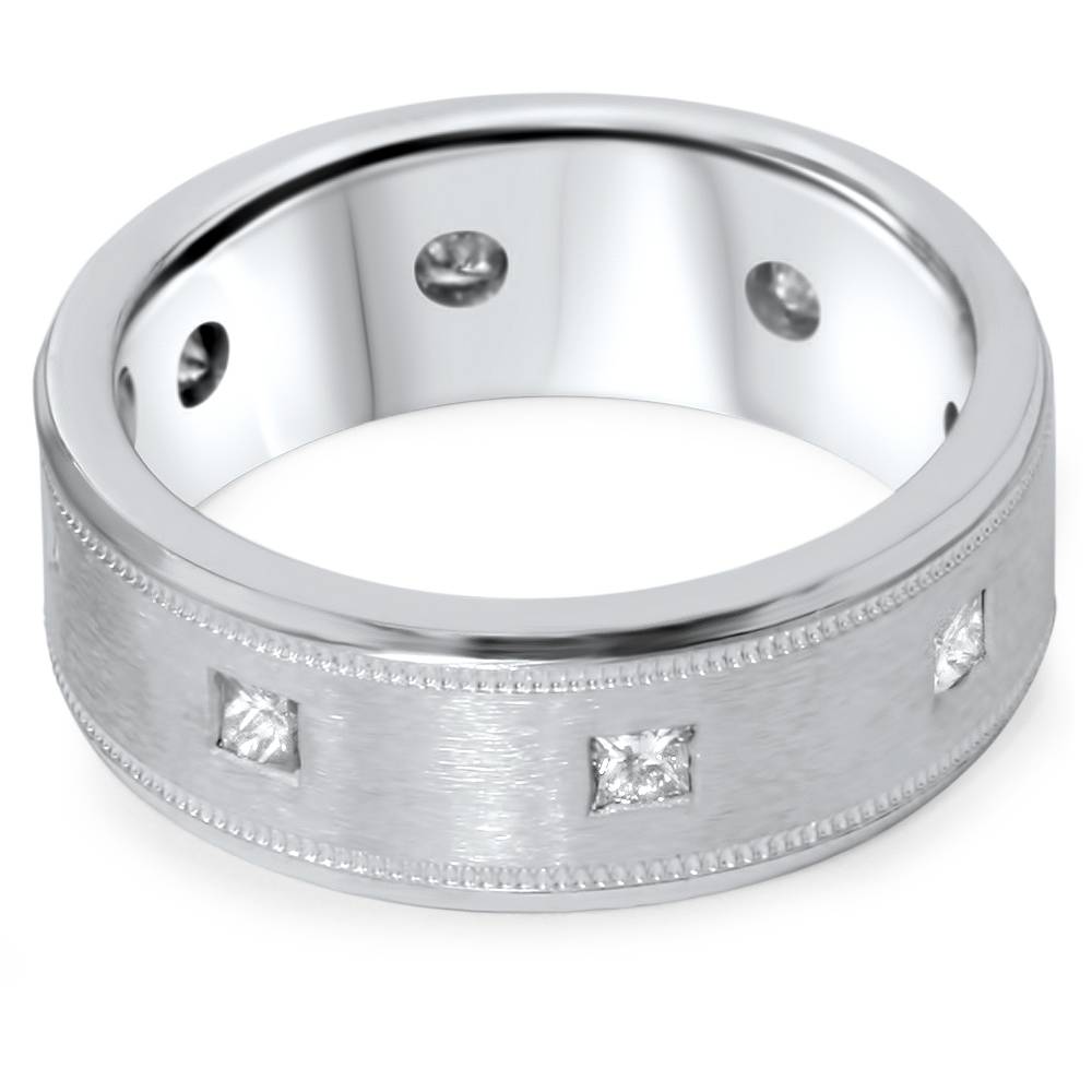 3/4ct Princess Cut Diamond Comfort Fit Wedding Ring 14K White Gold