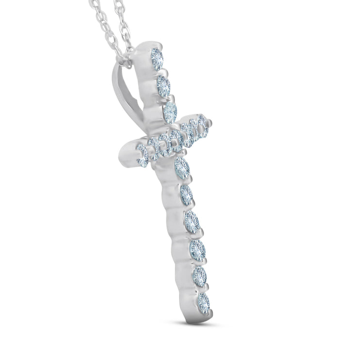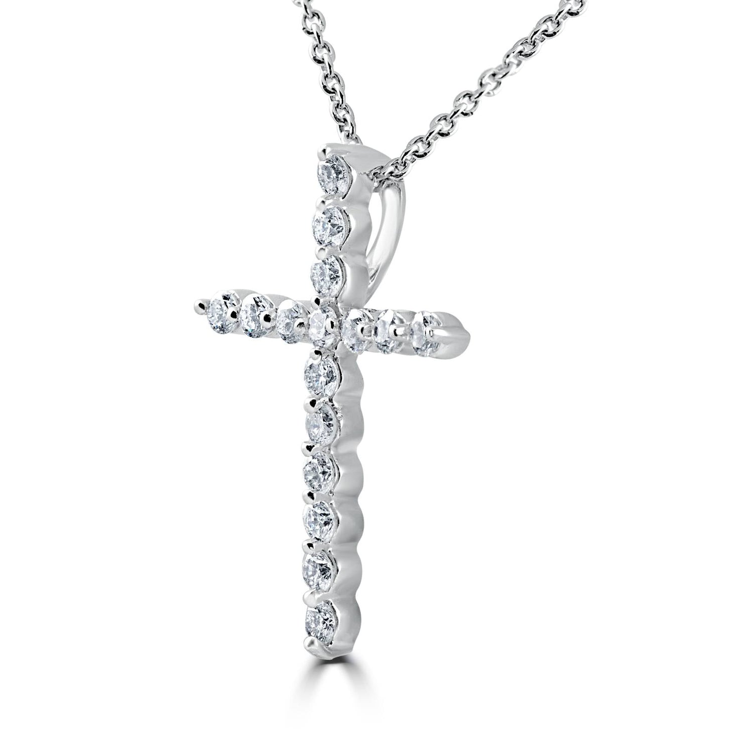This 3/8ct Real Diamond Cross Pendant by Pompeii3 is a beautiful symbol of faith and elegance. Featuring 16 round brilliant-cut natural diamonds, this pendant is prong-set in 14k white gold and comes with an 18' 14k white gold clasp lock chain.