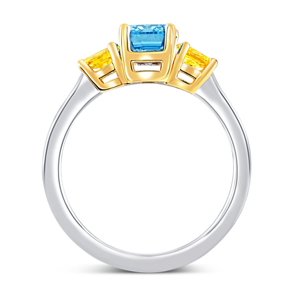 1 1/4Ct Fancy Blue & Yellow Diamond Engagement Three Stone Emerald Ring 14k Gold