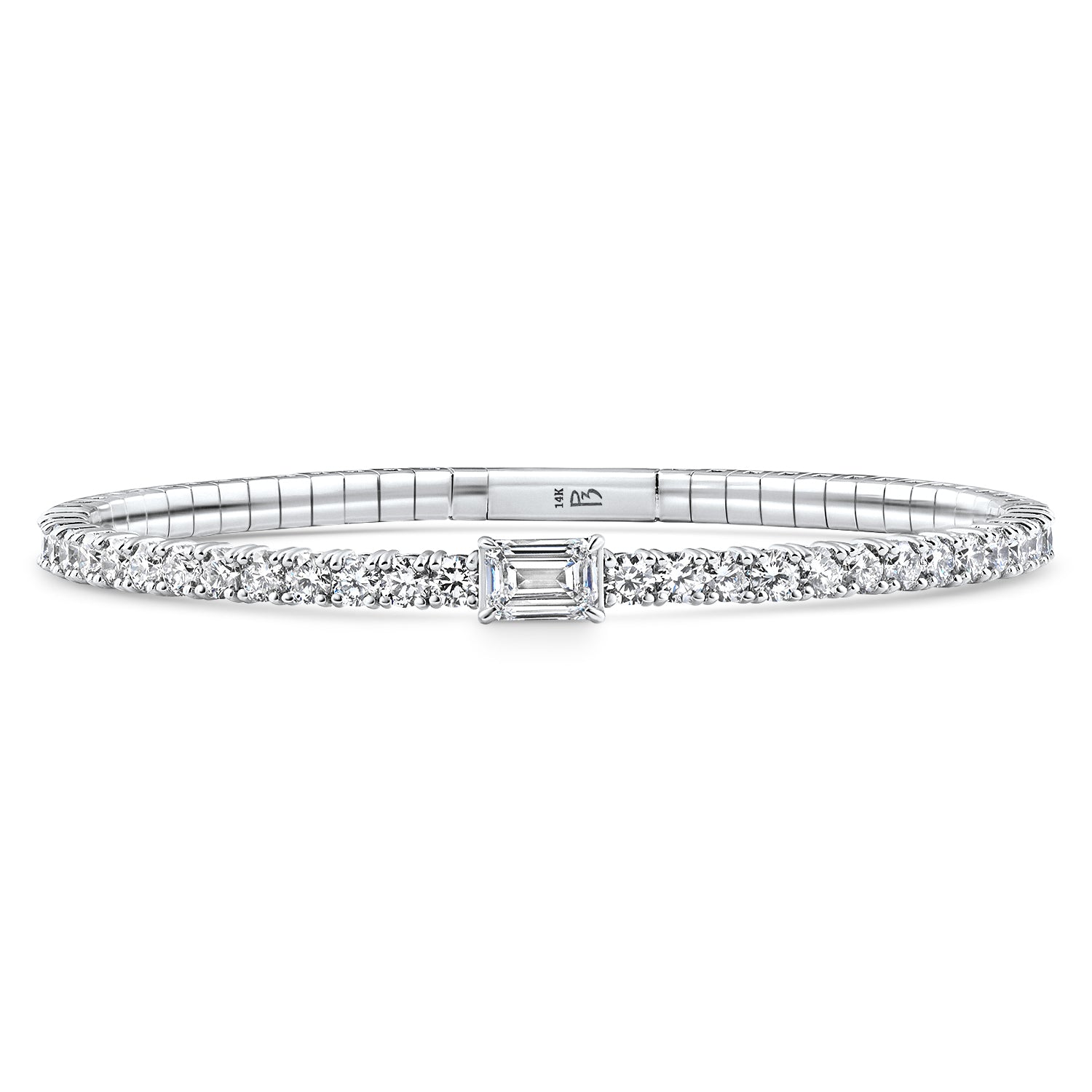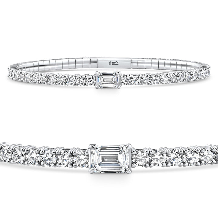4 1/2 CT Diamond Bangle Emerald Solitaire Flexible Tennis Bracelet 14k Lab Grown