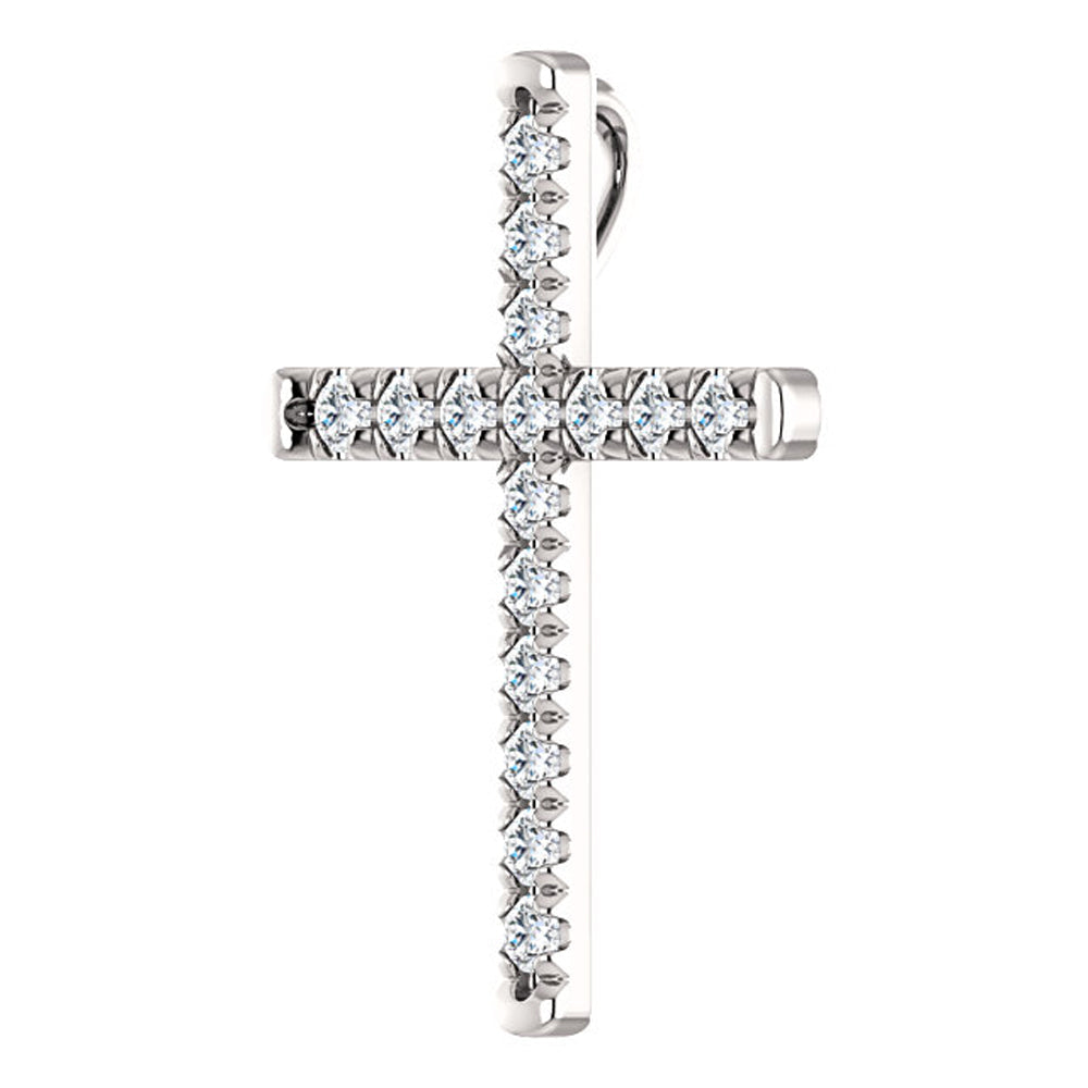 1/2 Ct EX3 Lab Grown Diamond Cross Pendant Necklace 1' Tall 14k White Gold
