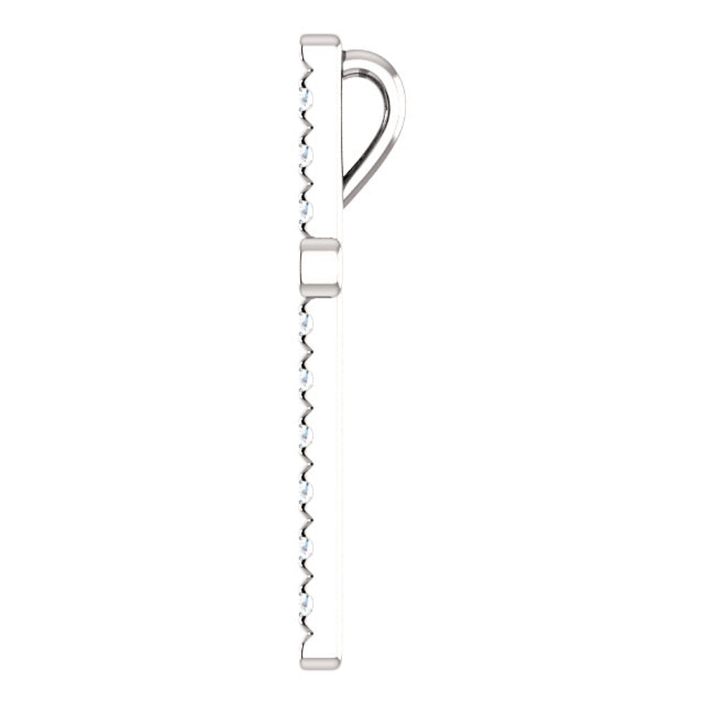 Handcrafted in solid 14k white gold with 16 round cut EX3 lab-grown diamonds totaling 1/2 carat weight. Includes an 18' 14k white gold lock chain. Pendant measures 1' tall.