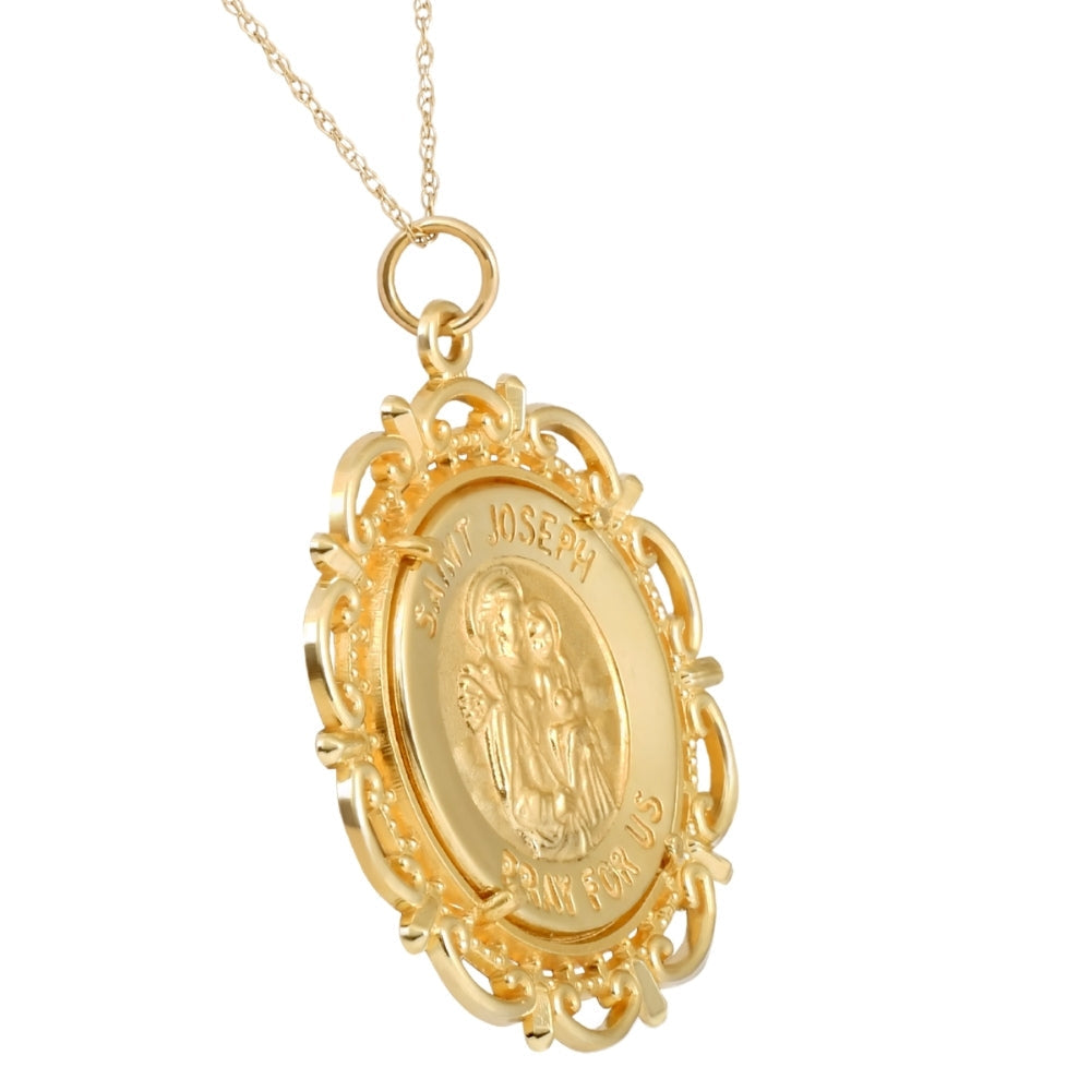 14k Yellow Gold St. Joseph Medal Pendant 1' Tall 5 Grams