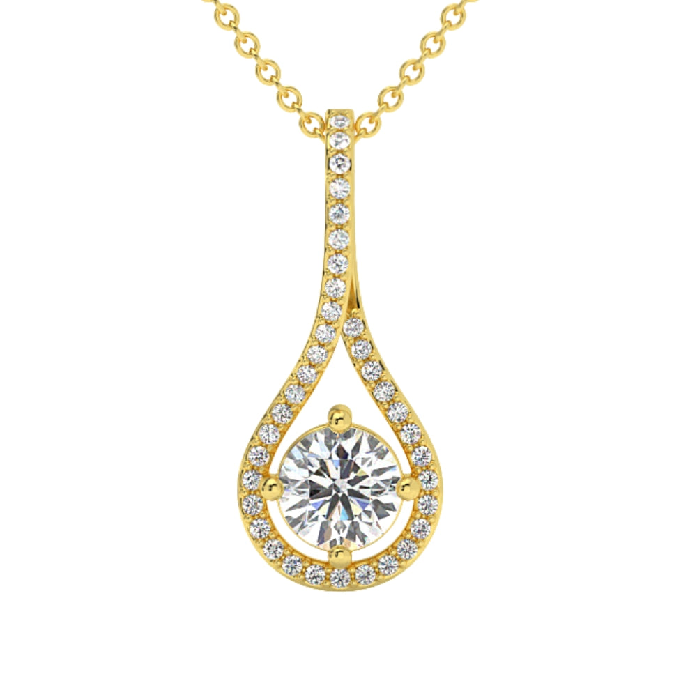 1 1/10Ct TW Diamond Halo Drop Pendant 14k Gold Necklace Lab Grown 1' Tall